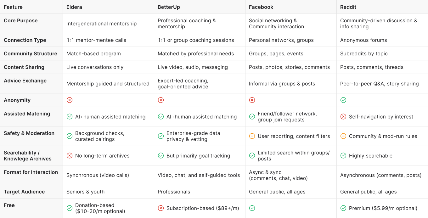 Competitors are too professionally formal, too socially casual, or lack age-inclusive, accessible design.