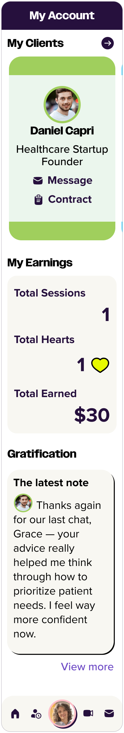 Startups and independent creators often need affordable, trustworthy guidance, but traditional consulting is too expensive and inaccessible. At the same time, many retired professionals are eager to stay active and contribute their expertise - especially when they feel useful and valued. Despite this opportunity for mutual benefit, there’s no simple, accessible way for the two groups to connect.