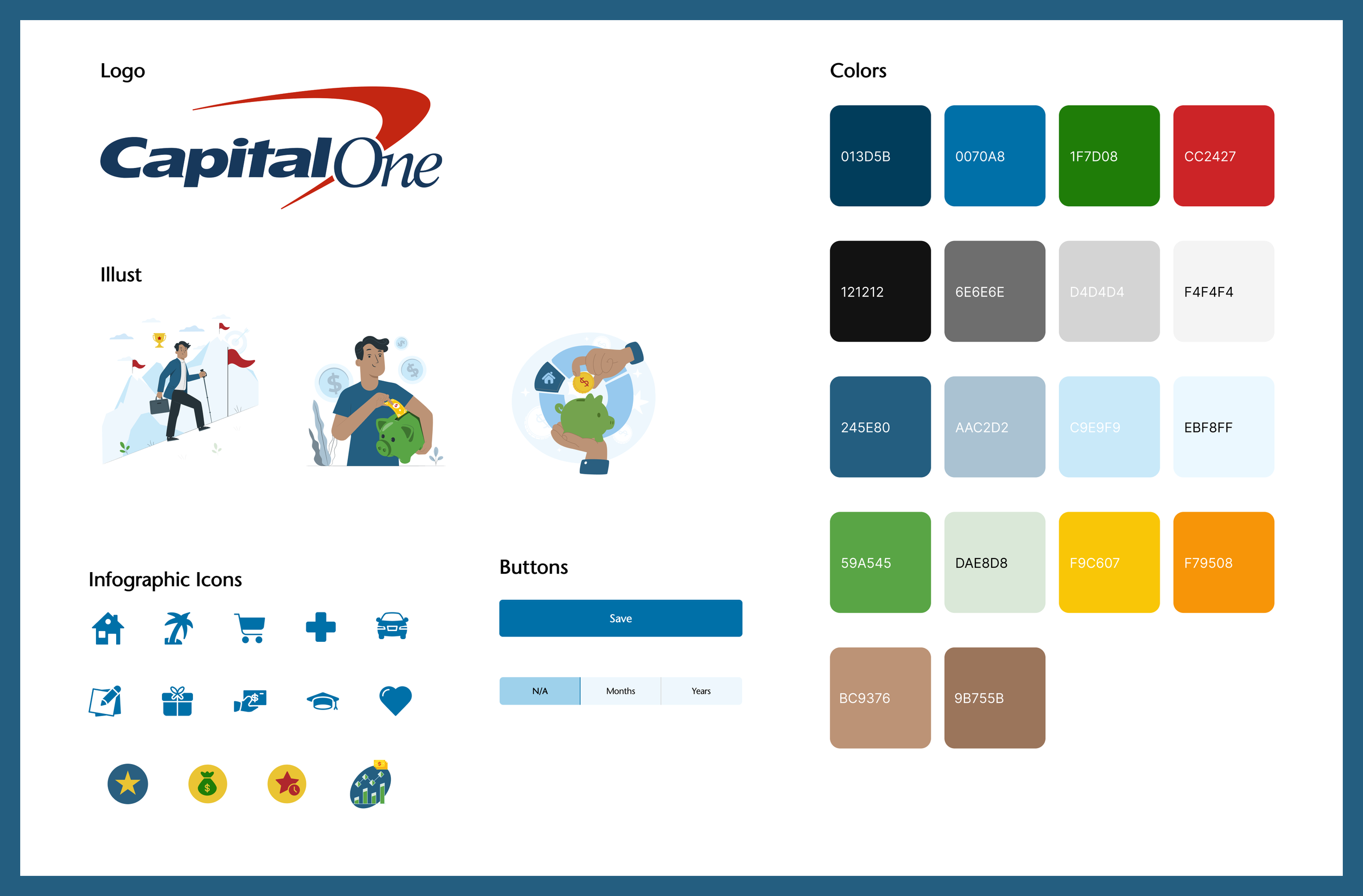 To ensure visual consistency and brand alignment, I implemented Capital One’s design system throughout the high-fidelity mockups. I focused on maintaining clarity and readability by using clean typography, an intuitive layout, and consistent iconography. To align with the app’s existing aesthetic, I customized colors for images and icons based on Capital One’s color palette and created matching infographic-style icons that visually support key content without overwhelming the interface. This approach helped reinforce trust, familiarity, and a seamless integration of the new feature within the existing product ecosystem.