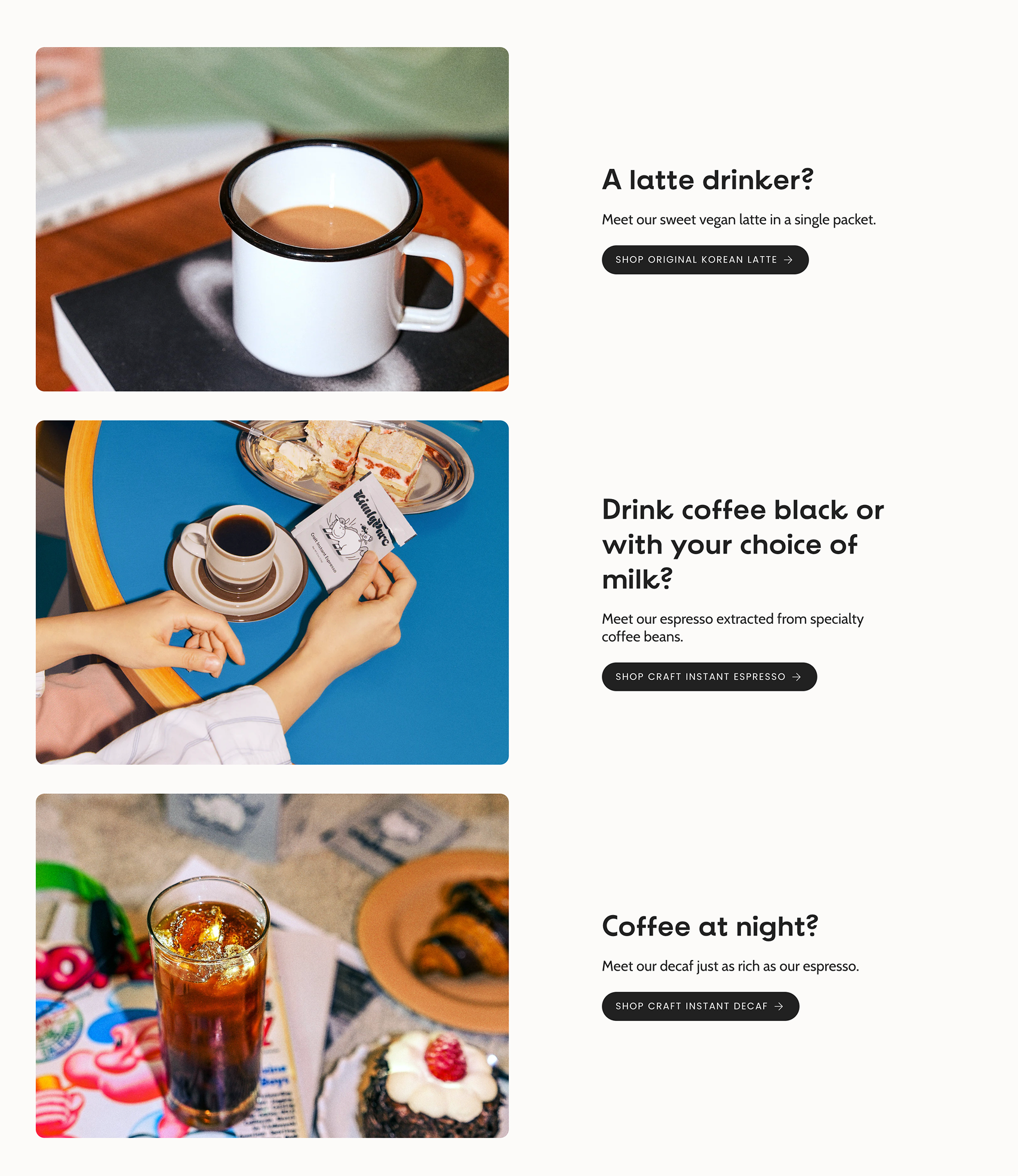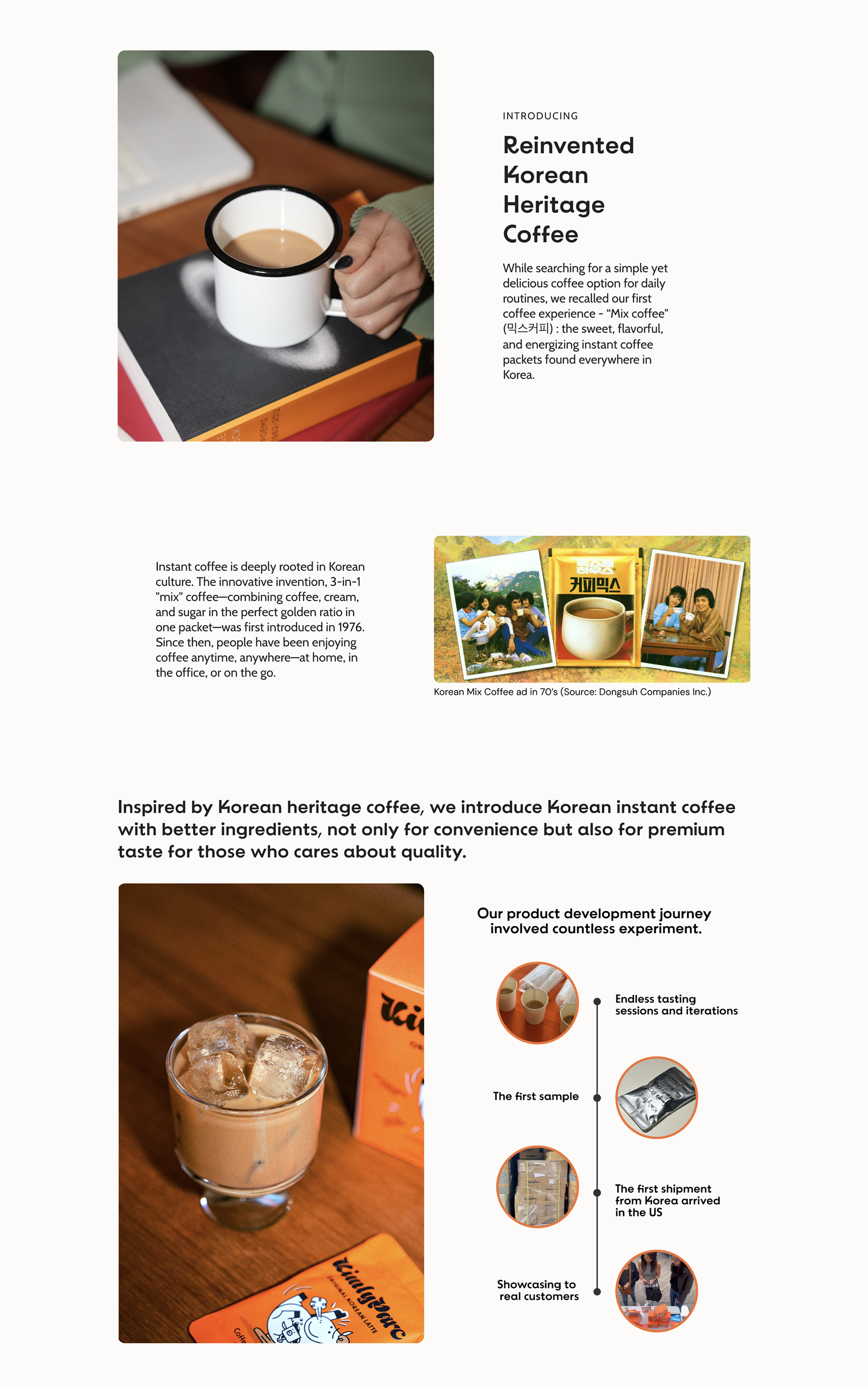 To keep product descriptions focused and consistent, I also shifted KimlyParc’s heritage story from the latte page to the About page, adding a link for those who wanted to dive deeper.