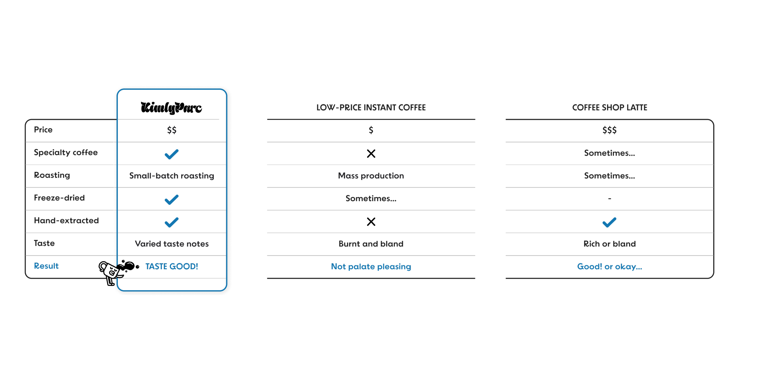 I created infographics for brew guides, ingredients, coffee bean, and competitive chart - making KimlyParc’s product strengths clear, intuitive, and easy to trust at a glance.