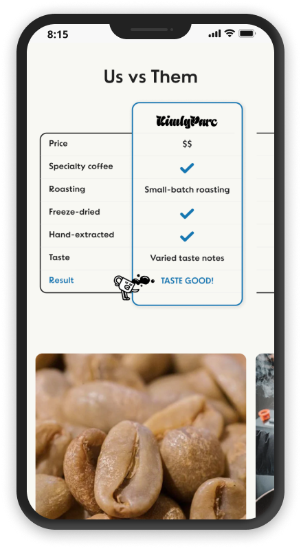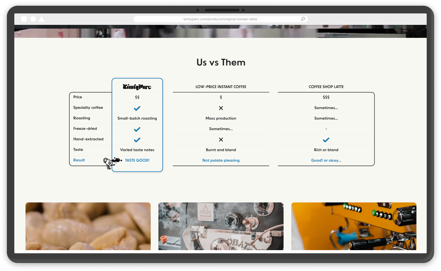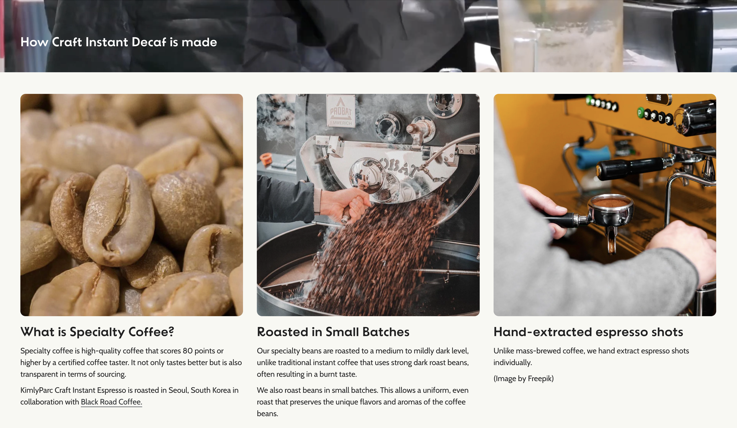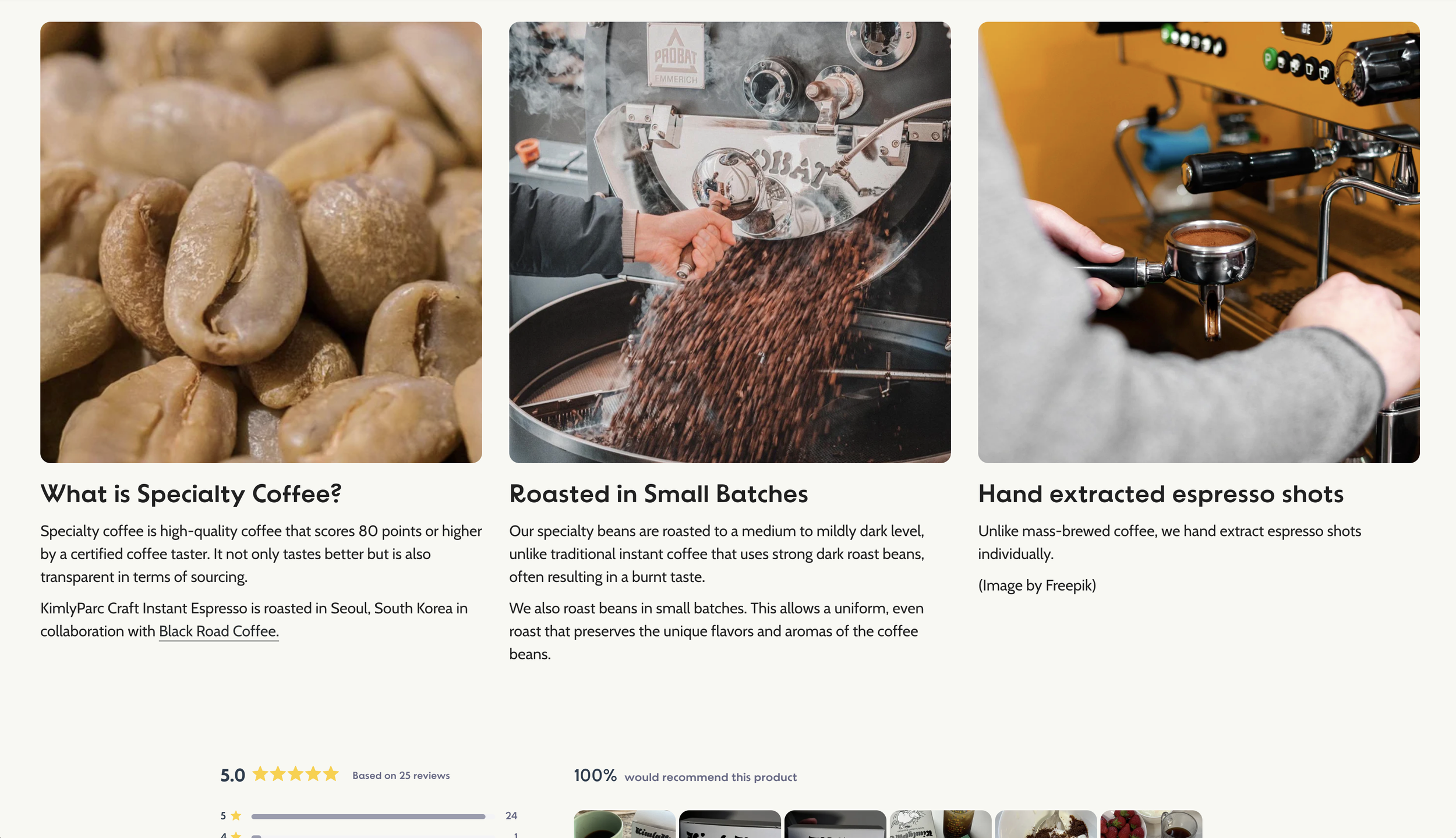 Users couldn’t quickly grasp what made KimlyParc coffee special, leaving them unsure about its quality, ingredients, and why it was worth buying.