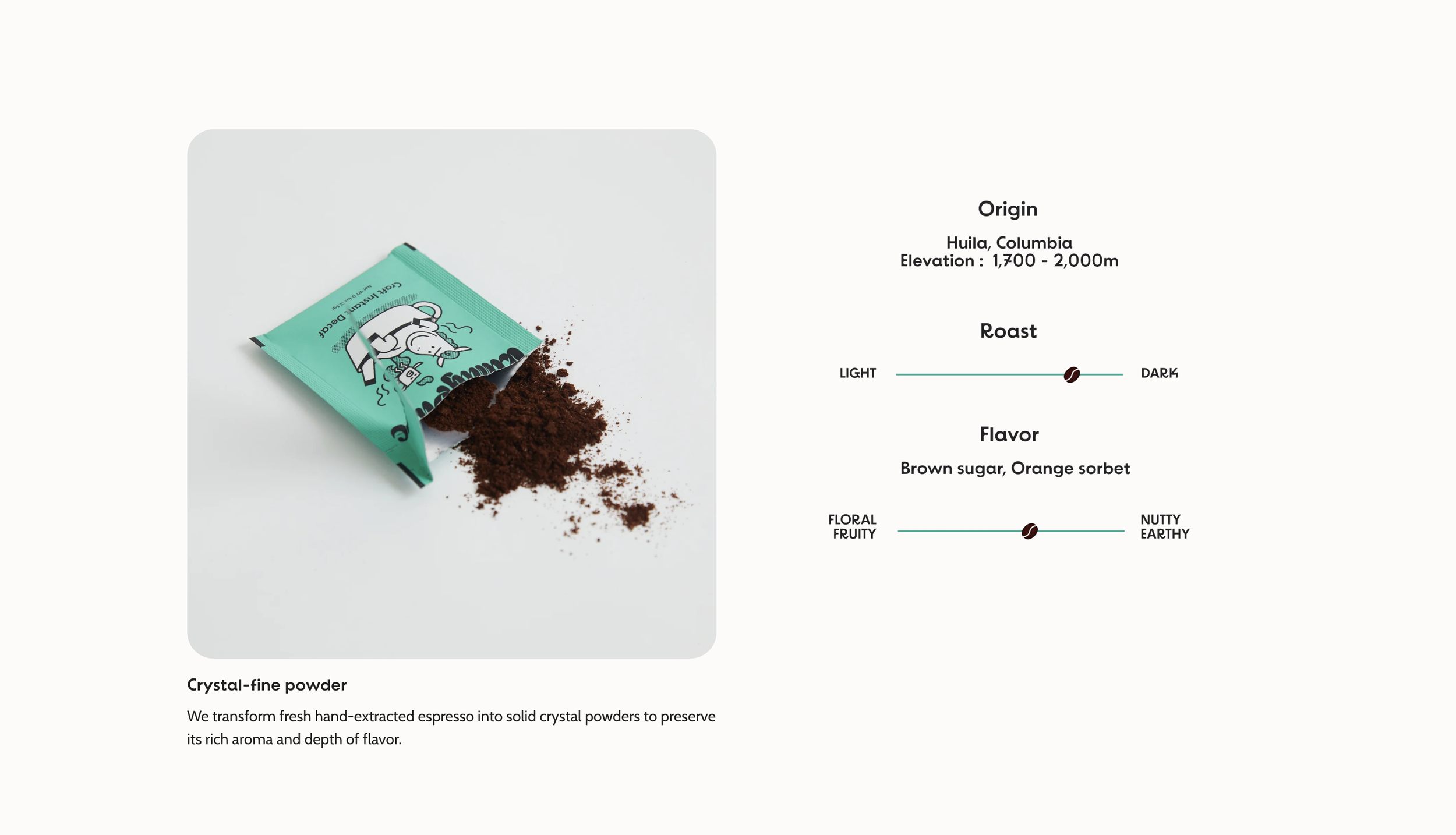 I learned how to translate complex product details (like freeze-drying, decaffeination, and ingredient quality) into digestible, user-friendly content. I also deepened my understanding of how to align visual storytelling with user motivations—especially when designing for both clarity and conversion.