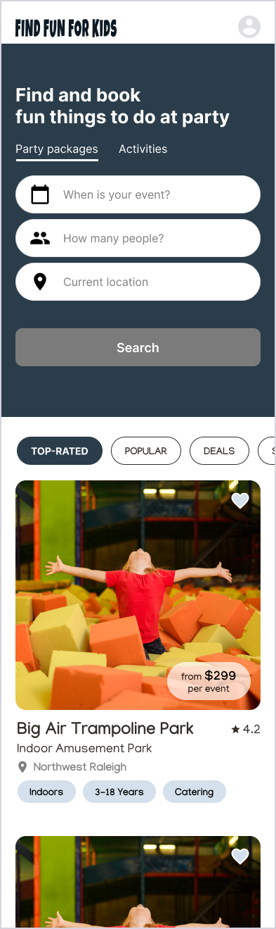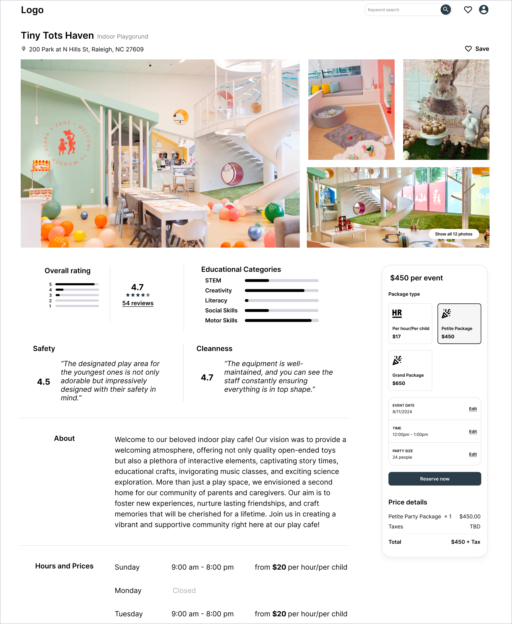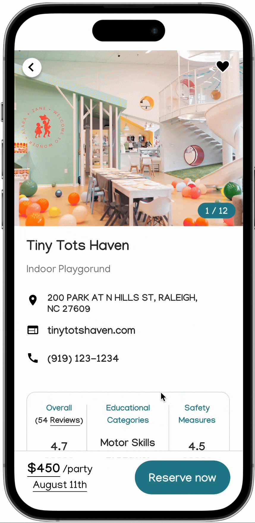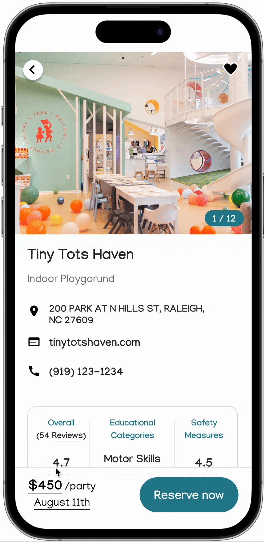 To further improve the product and elevate user engagement, I suggest to introduce a social feature that fosters community connections. This addition will empower parents to share experiences, exchange recommendations, and support each other, making the platform not only a booking tool but also a collaborative space for planning memorable events.
